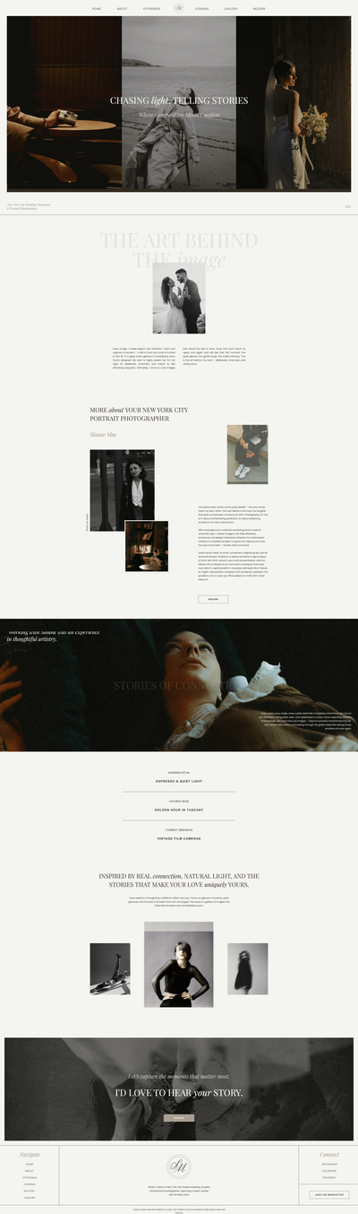 This template was lovingly designed by Nectar Design Co. Crafted for photographers and creatives who want an elegant, user-friendly site. It’s fully customizable to reflect your unique style. Photos sourced from Pexels and Dupe.